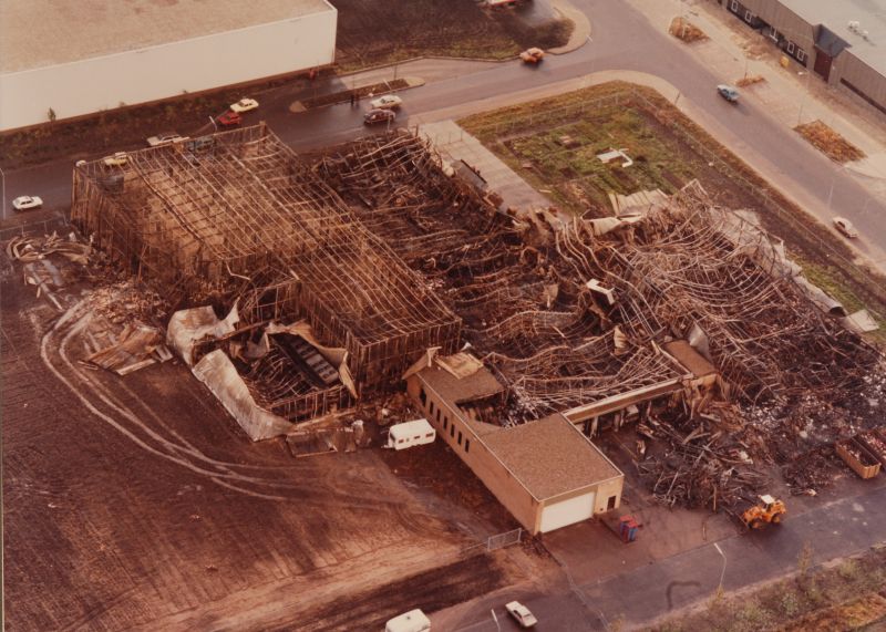 Een jaar later was het gehele pakhuis weer opgebouwd en draaide de productie weer op volle toeren.